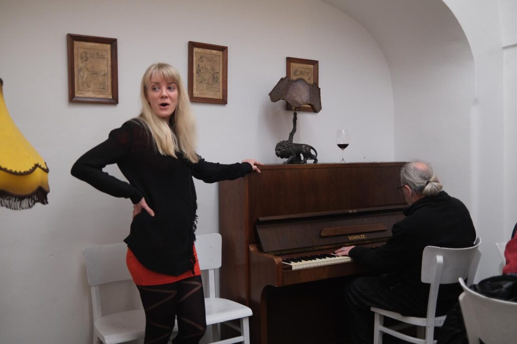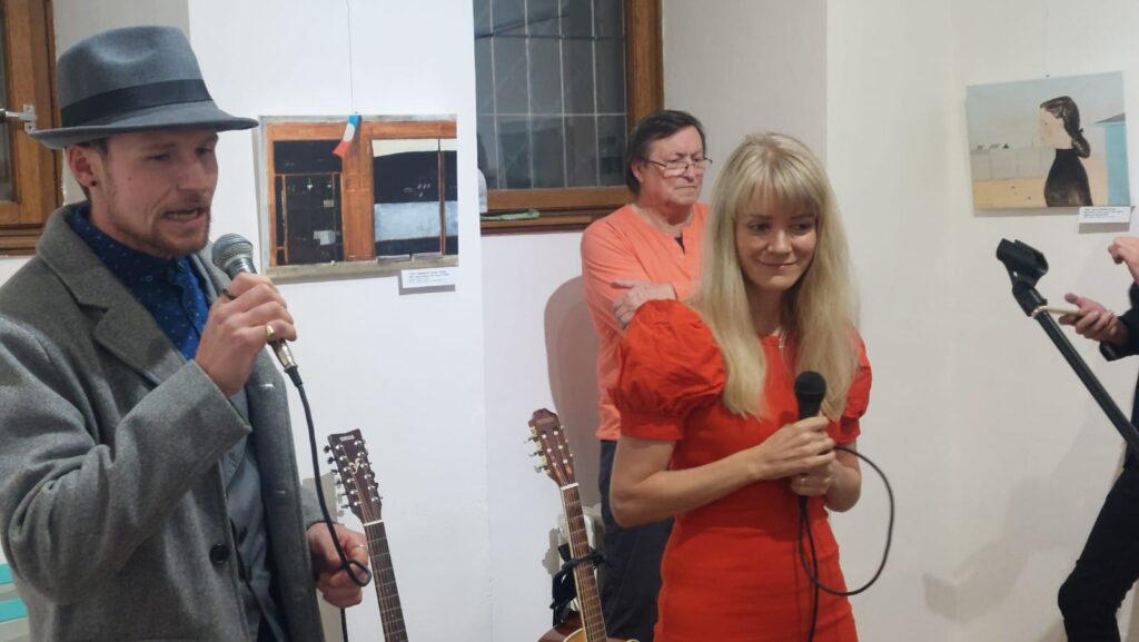Divadlo GOLD připravilo doprovodný program, který obohatil atmosféru večera. Naživo jsme zazpívali písně z našich her, ale také skladby, které tematicky ladily s Lhotákovou tvorbou – s jeho obrazy plnými fantazie, nostalgie a radosti z obyčejných věcí.
